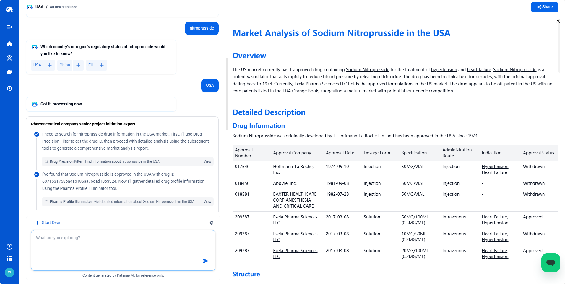 For more scientific and detailed information of Sodium Nitroprusside, try PatSnap Eureka Pharma CI Explorer.
